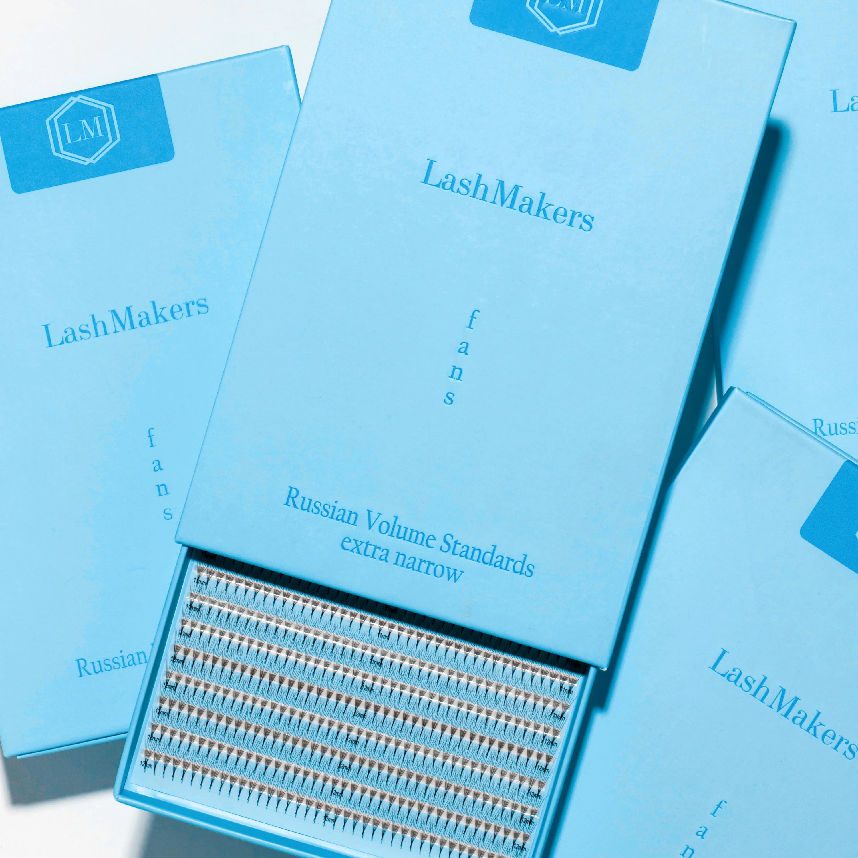 LashMakers extra narrow pre-made fans are crafted using the latest technique, improving the shape of the pre-made Volume fans as we know them. Featuring extra narrow openings for density and needle-like heat-bonded bases for flawless application, fans will arrive in jumbo boxes holding 880 fans.